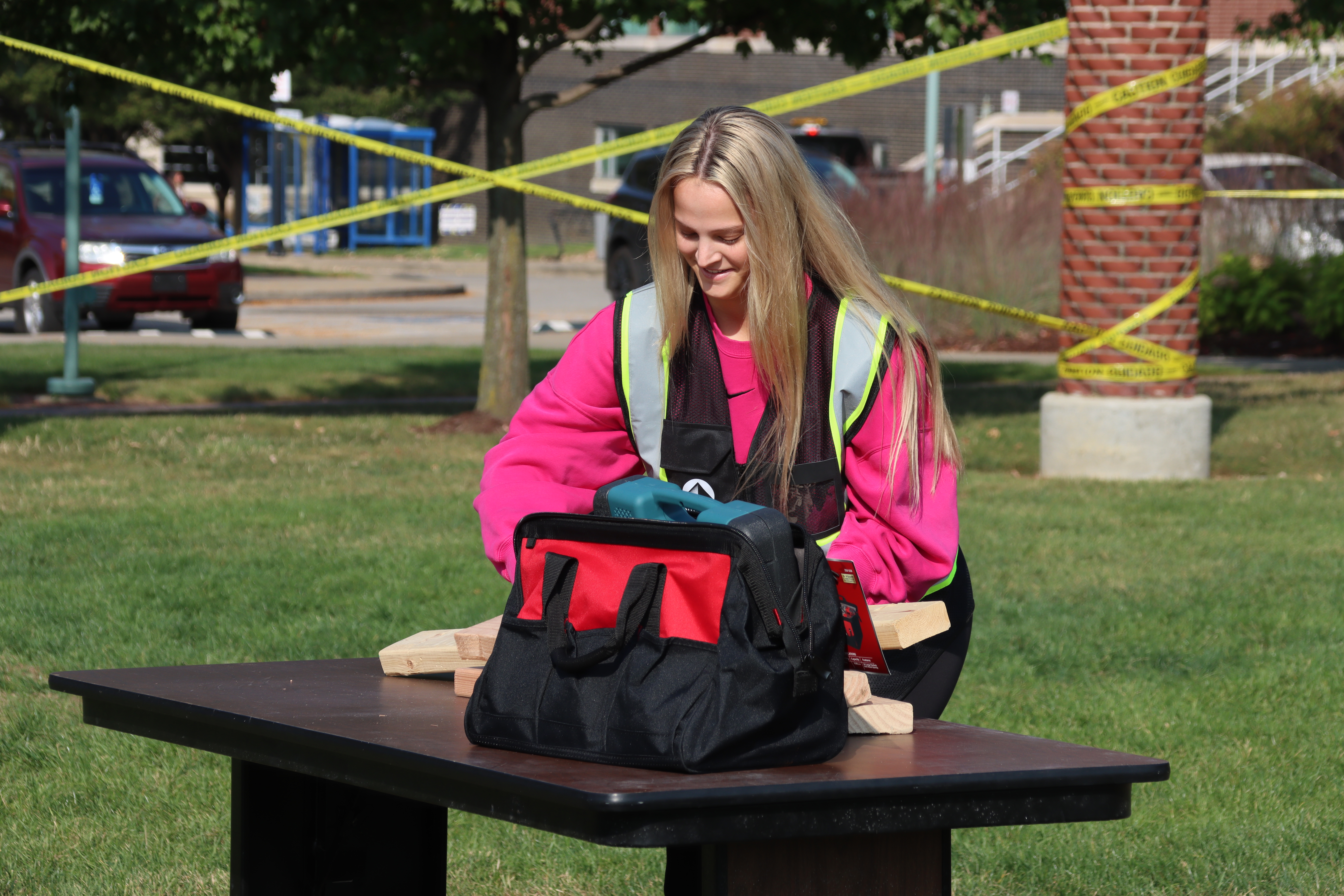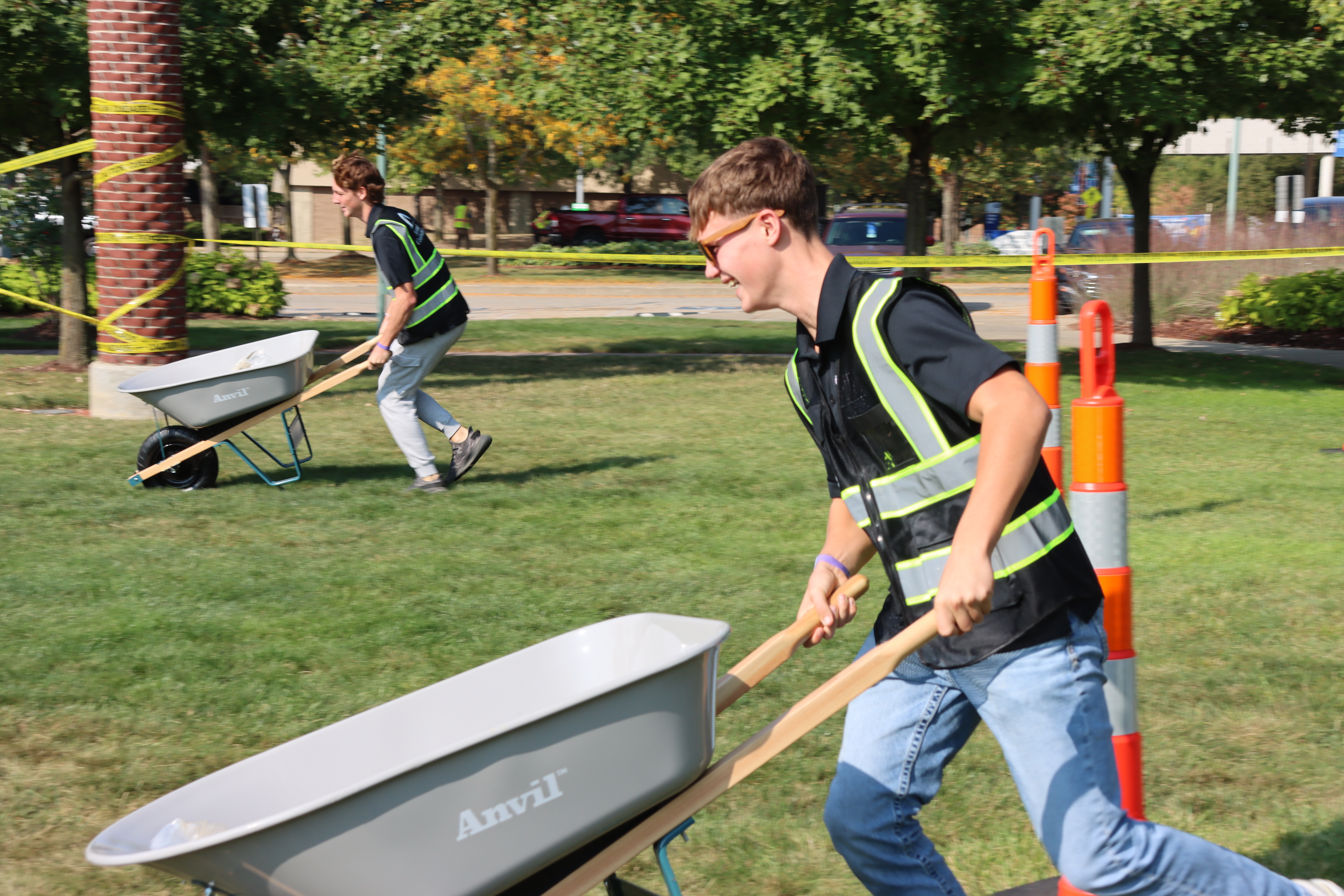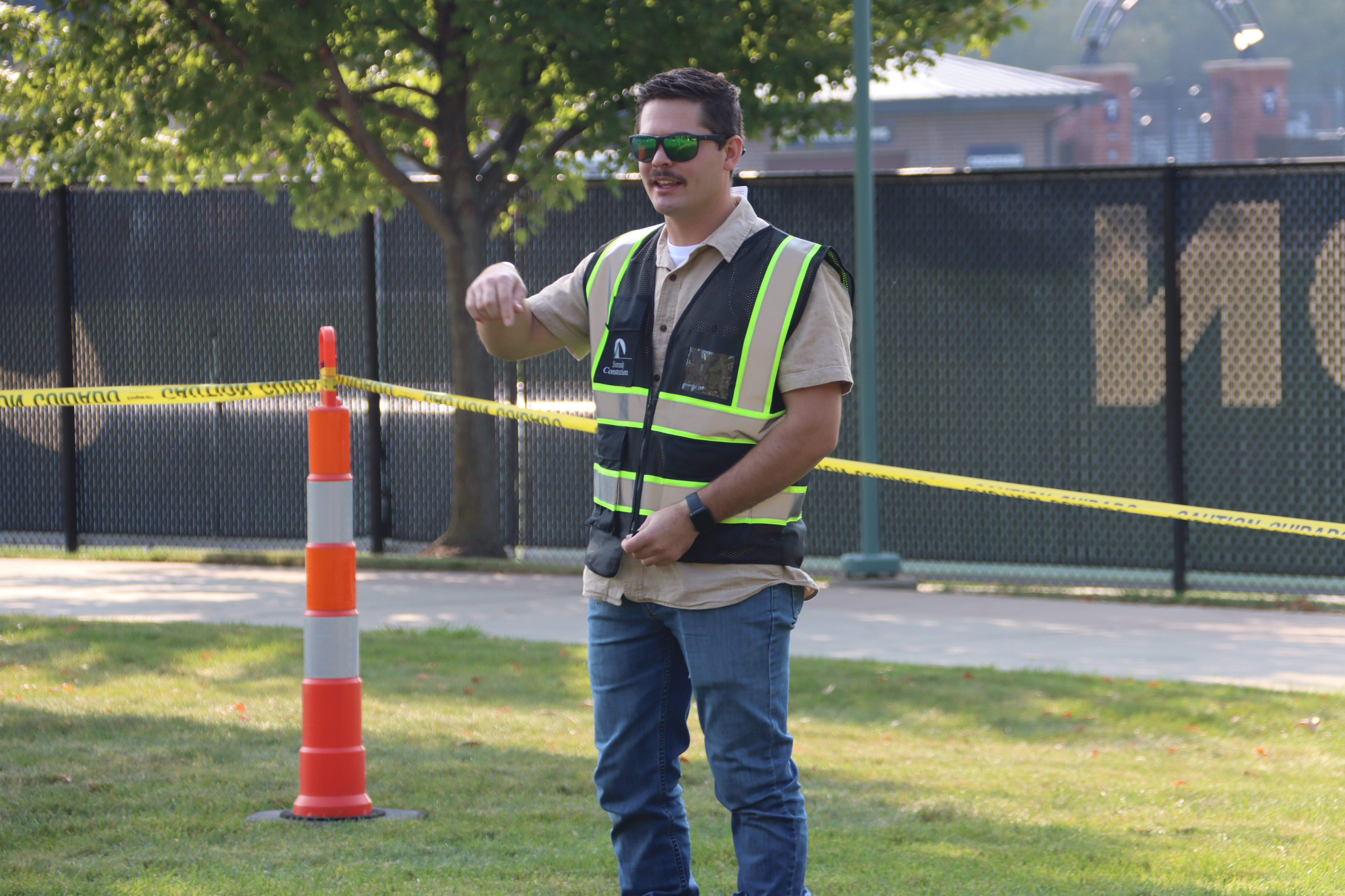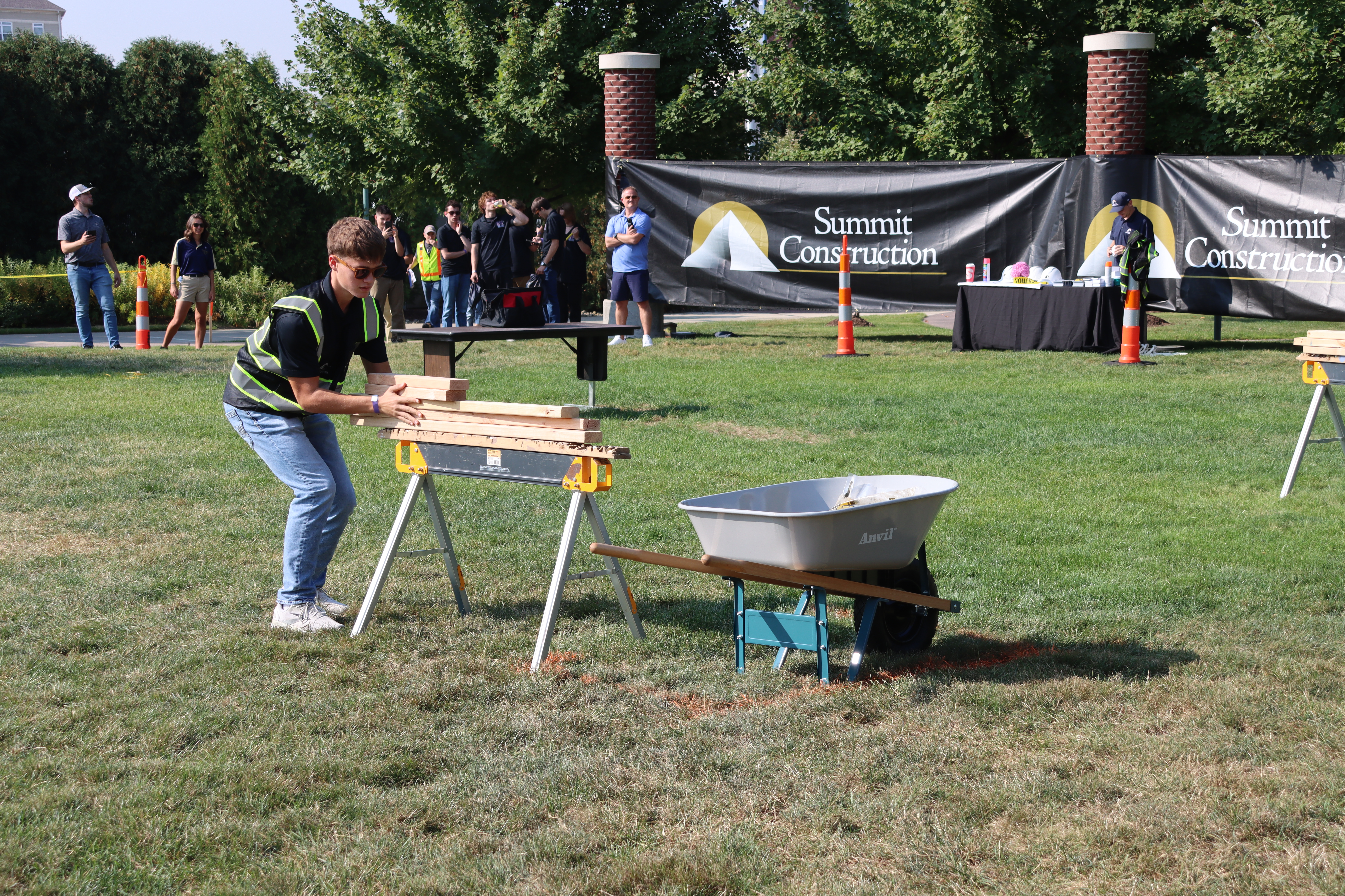 This year, Summit had the opportunity to host The Steeple Chase, which was located on Coleman Commons. There, the Summit team staged the event to mimic a construction site, complete with caution tape, traffic cones, and even a fence screen. Students were timed as they ran through the mini obstacle course in Summit hard hats and safety vests.