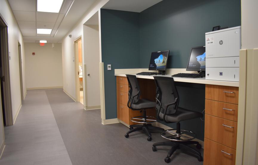 The state-of-the-art facility's first floor consists of imaging rooms (X-ray, Mammography and Bone Density rooms), and the second floor consists of exam rooms, offices and a waiting room.